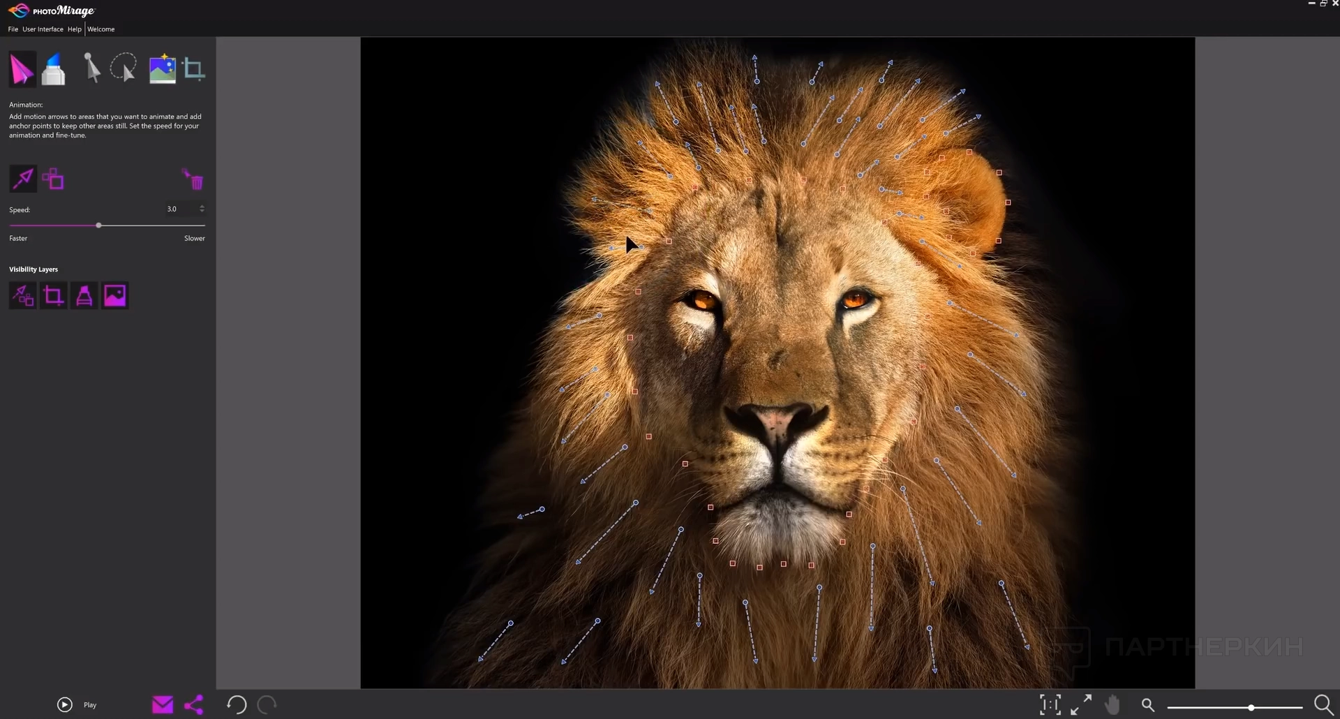 Эта функция позволяет пользователям добавлять движение к определенным частям изображения. Чтобы анимировать выбранные элементы, достаточно перетащить стрелки движения на области, которые нужно переместить. Это помогает создать ощущение движения и динамики, делая изображение более живым и привлекающим внимание.