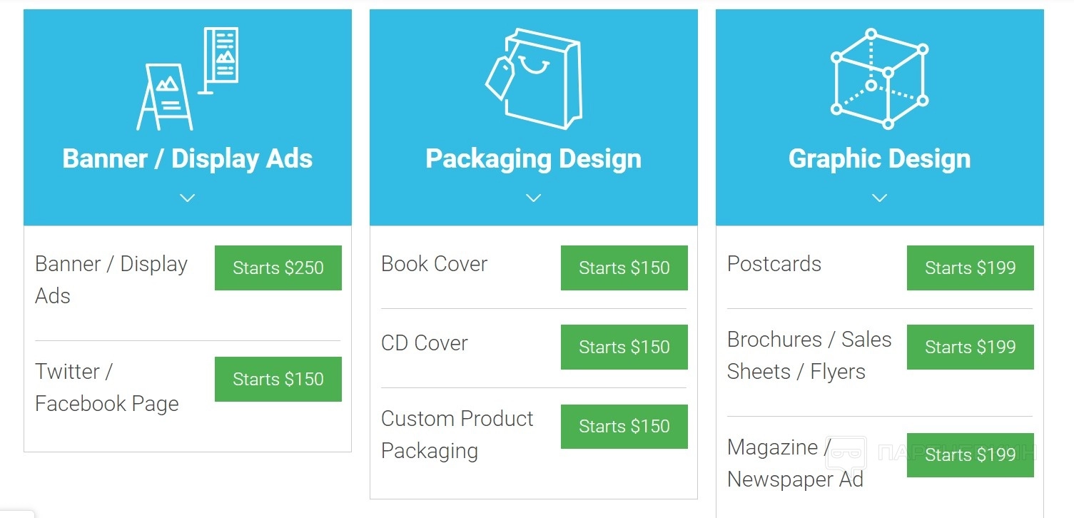 При заказе логотипа пользователь сразу получает большое количество вариантов в течение нескольких часов. Также компания предлагает другие виды услуг: веб-сайт, полиграфический дизайн, медийная реклама, SEO и многое другое. Достаточно создать макет, выбрать приз и получить готовый результат.
