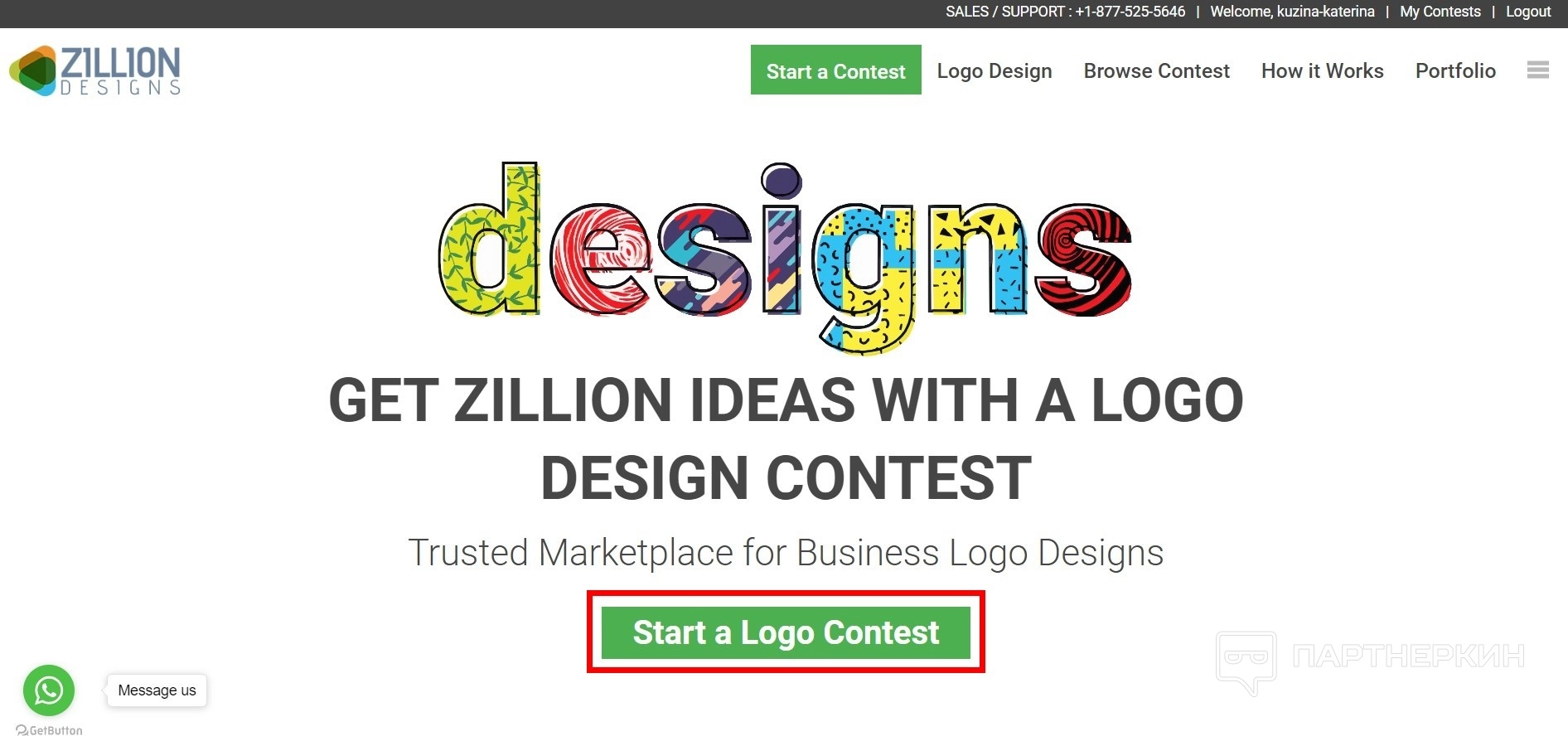 - Войдите в личный кабинет под своим логином и паролем. На официальной странице нажмите на кнопку Start a Logo Contest .