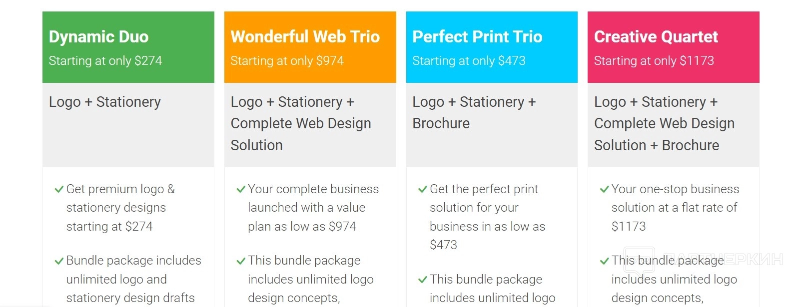 Также у сервиса нет помесячной тарификации. Сумму пользователь вносит один раз. Потом дизайнеры работают над проектом до окончательного решения заказчика. Однако есть комплексные решения, которые позволяют экономить средства. Чем дороже пакет, тем больше услуг можно добавить для своего бренда.