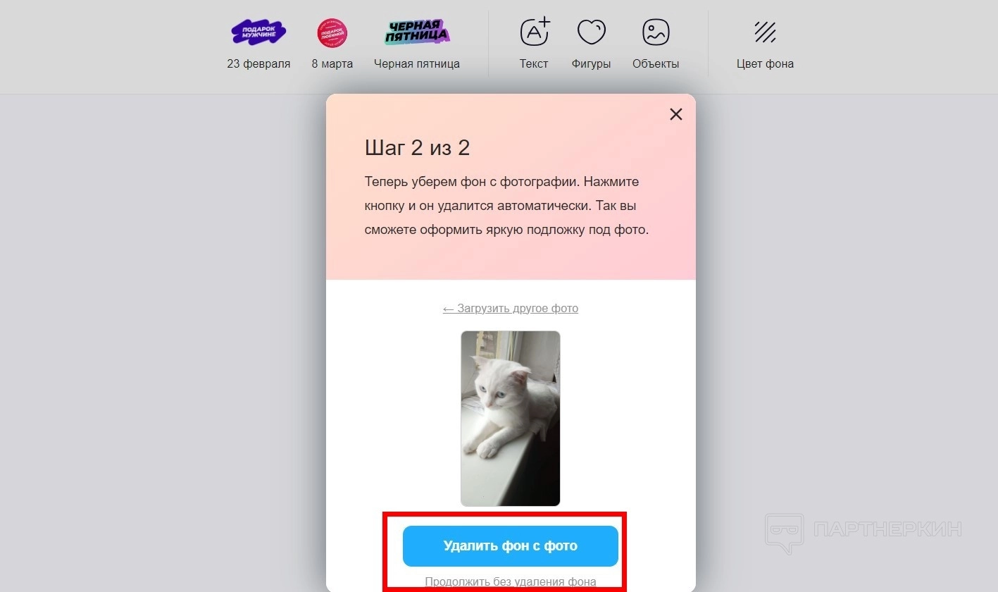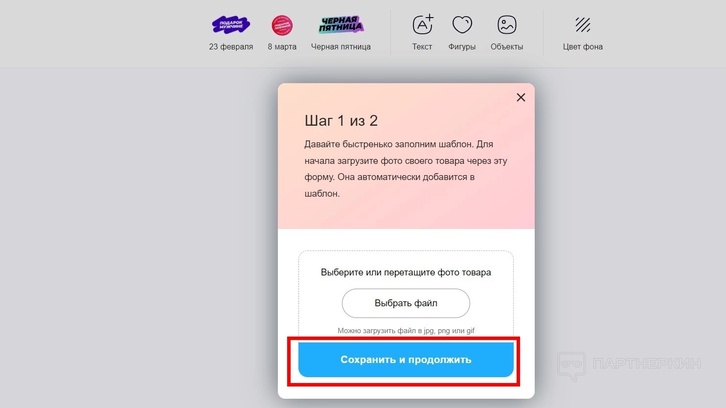 Ничем практически не отличается от конструктора. Инструмент больше напоминает самоучитель для начинающих. Сервис подсказывает, что нужно поменять. Дальше пользователь подставляет свои фото, текст и фон.