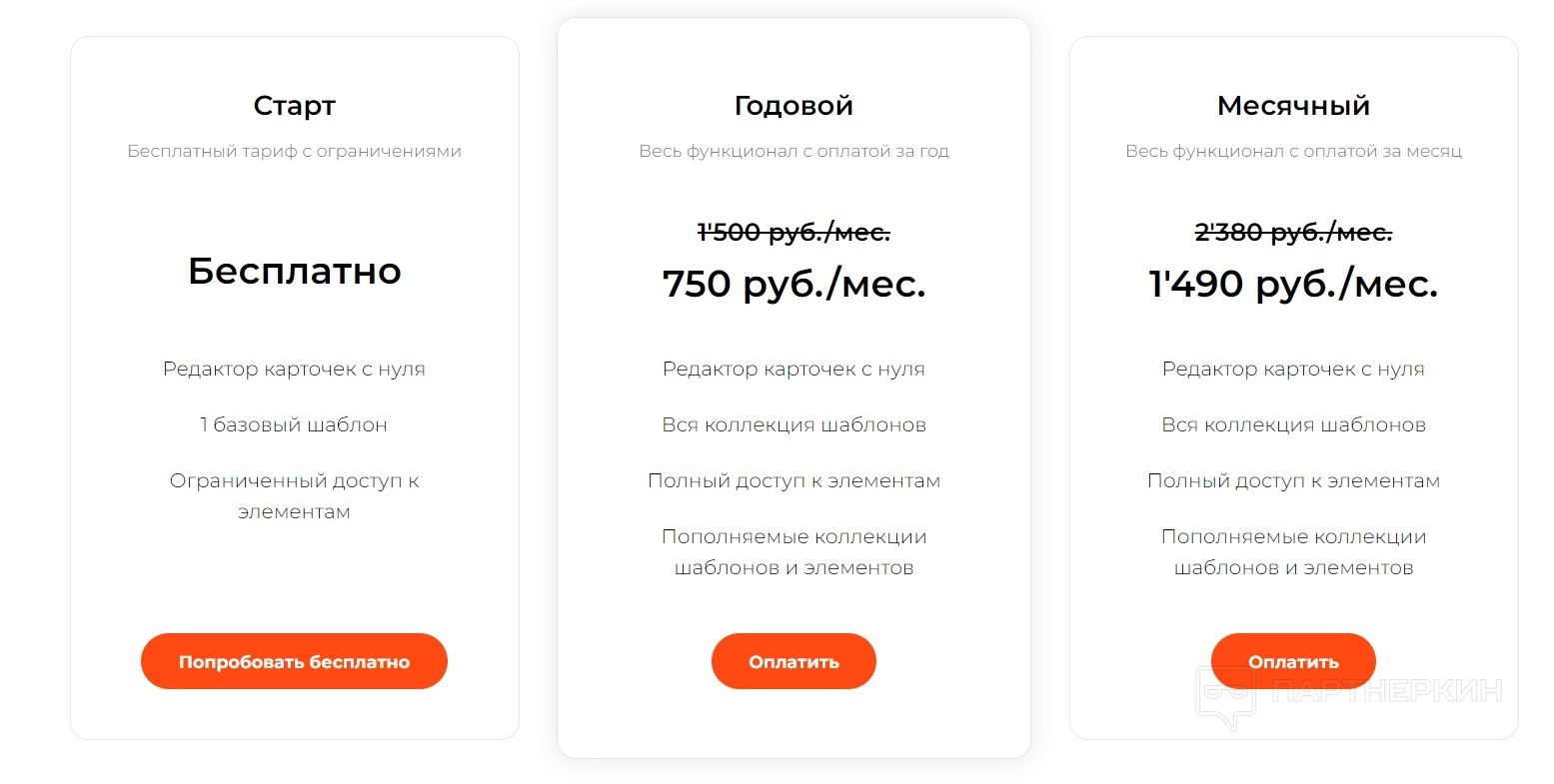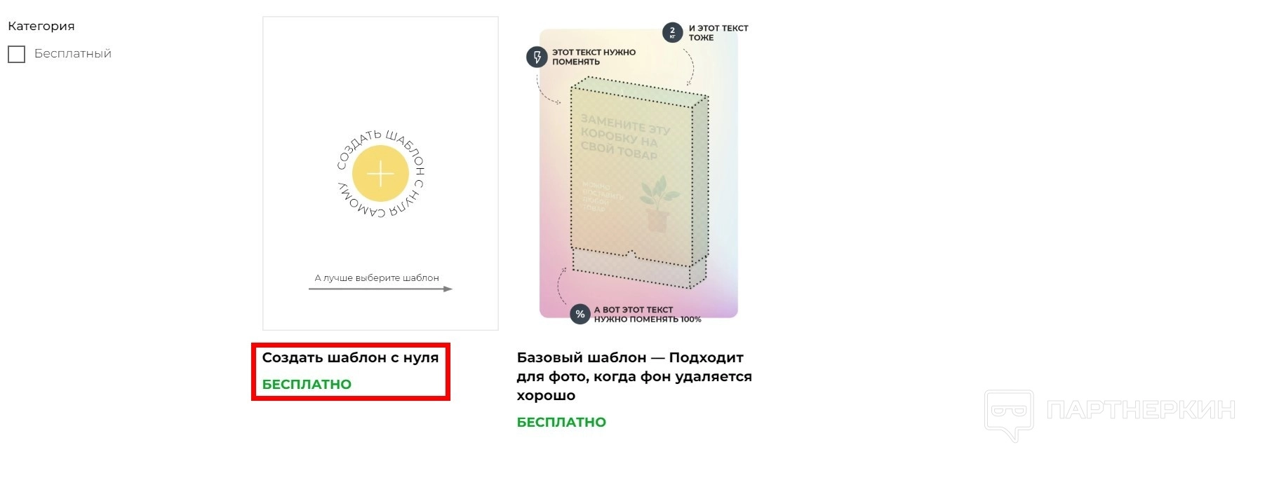 После регистрации на платформе пользователи получают доступ к бесплатному тарифному плану, который включает базовые функции для создания карточек товаров. В рамках этого плана предоставляется редактор для создания карточек с нуля, один базовый шаблон. Также ограниченный доступ к элементам дизайна. Это отличное решение для тех, кто хочет протестировать сервис или создать простую карточку без дополнительных затрат.