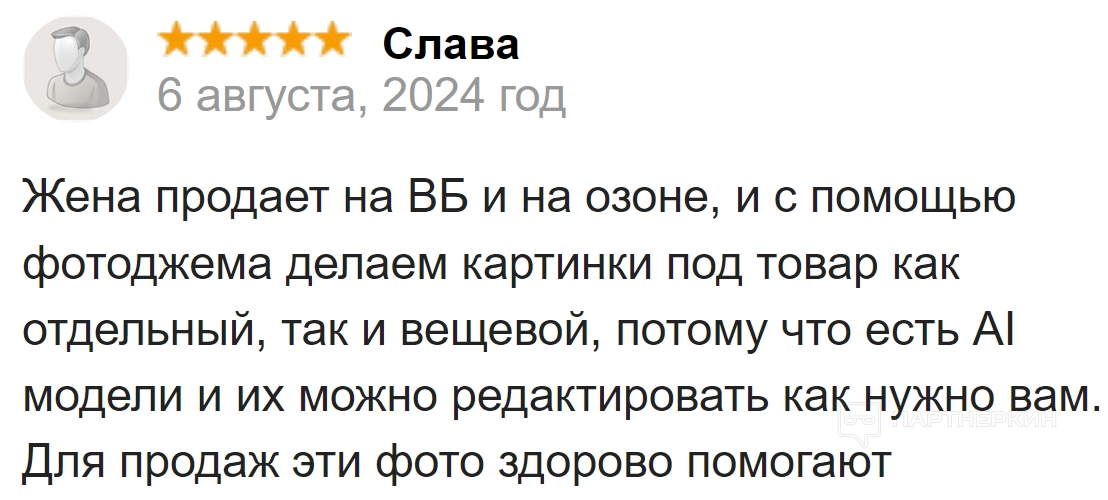 Еще один пользователь доволен, что Photojam помогает создать картинки под товар на маркетплейсах. Отдельно отмечаются ИИ-модели, которые можно редактировать по своему усмотрению.