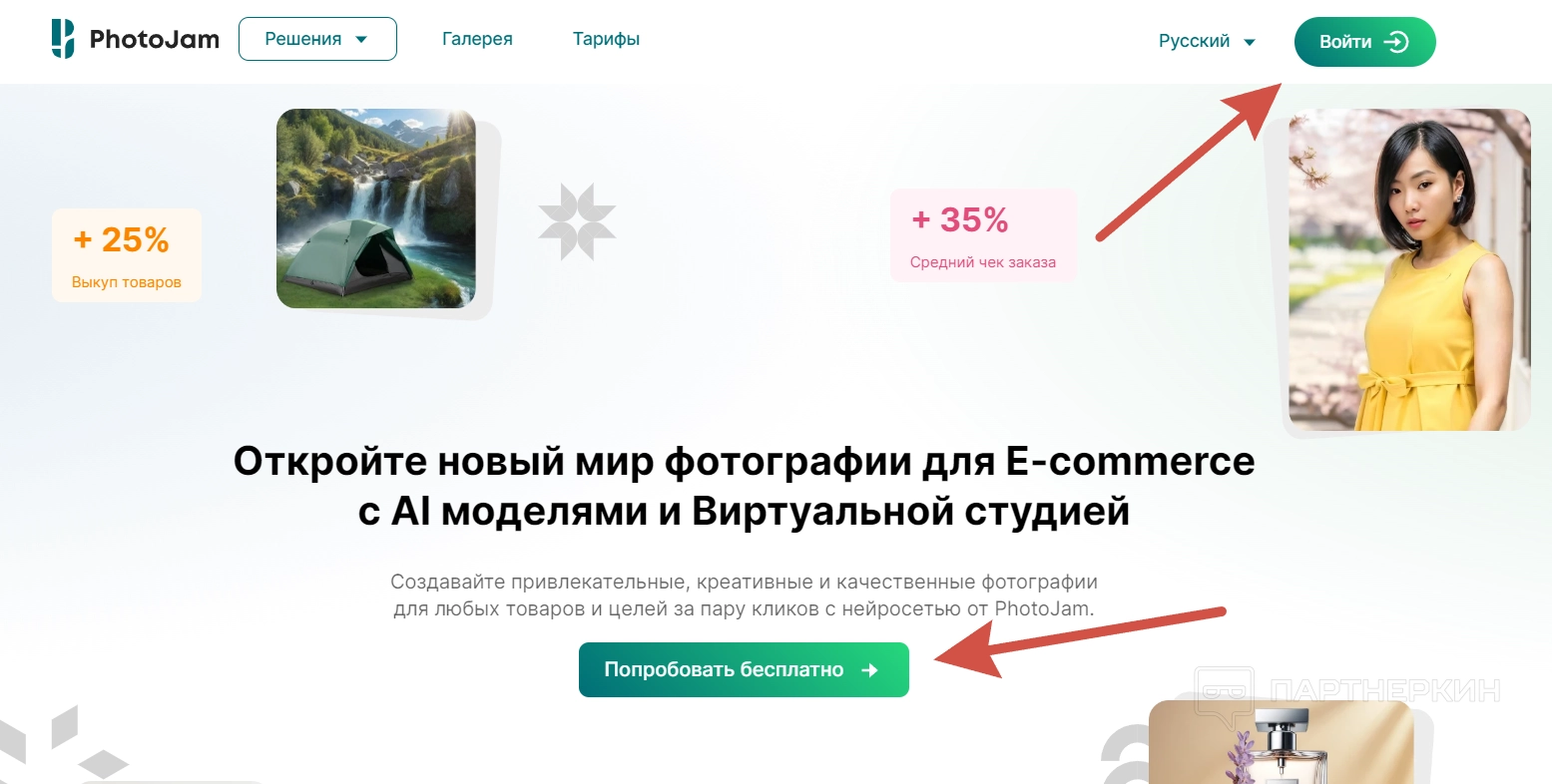 Для получения доступа к функционалу вам понадобиться зарегистрировать учетную запись. Открываем главную страницу сервиса и жмем на кнопки «Войти» или «Попробовать бесплатно».