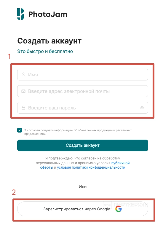 Для создания аккаунта вам нужно всего лишь указать имя, электронную почту и пароль. Также есть второй вариант – авторизация через Google. Выбираем подходящий способ и заканчиваем регистрацию.