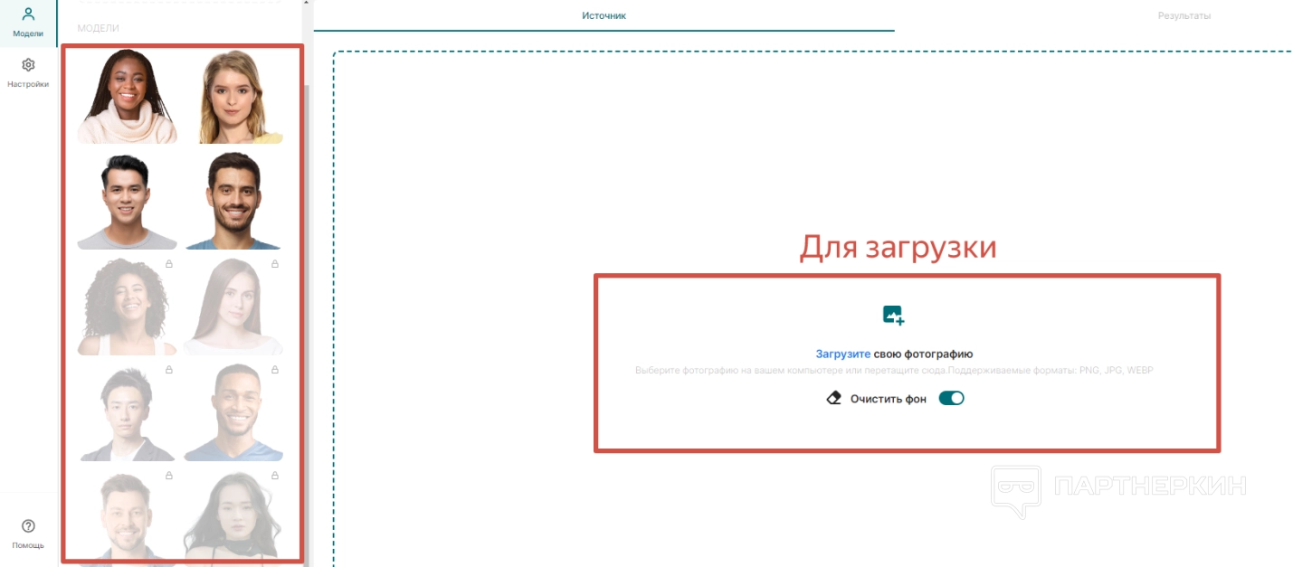Откроется список с доступными моделями. Выбираем подходящий вариант или загружаем свое изображение.
