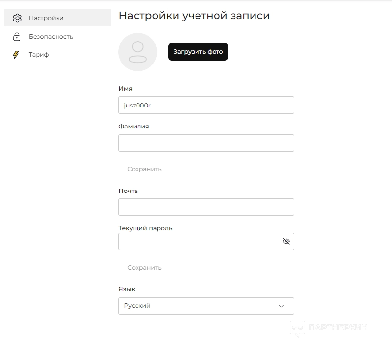 В личном кабинете вы можете изменить имя, фамилию, добавить адрес электронной почты, загрузить фотографию.
