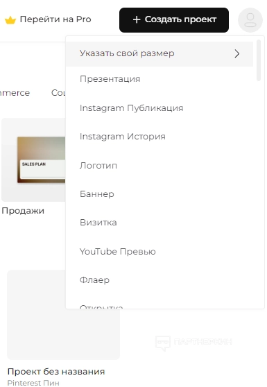 Вы можете создать разные проекты: от логотипа и баннера до обложки журнала и печати на холсте. В таблице мы показали все варианты проектов, которые доступны на бесплатном и платном тарифах: