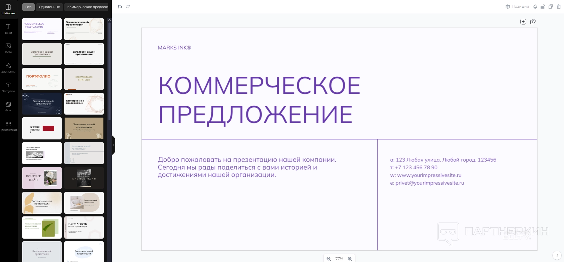Простой и удобный онлайн-редактор. Сервис идеально подходит для создания презентаций, коммерческих предложений и бизнес-документов, которые не стыдно показать большой публике.