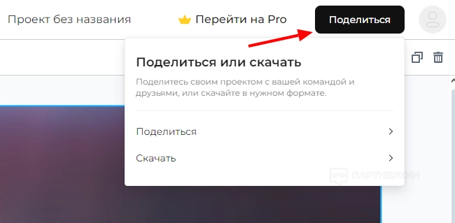 Мы рассмотрели основные инструменты, доступные в сервисе. Можете экспериментировать с разными функциями и создавать разные креативы. Чтобы загрузить готовое изображение, нажмите «Поделиться» в правом верхнем углу и кликните «Скачать».