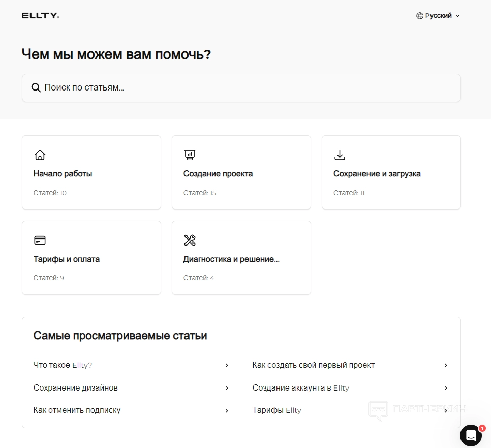 Здесь вы найдете ответы на часто задаваемые вопросы. Вы узнаете, как создать свой первый проект, сохранить дизайны, отменить подписку. Для удобства можете ориентироваться по специально выделенным категориям или воспользоваться поиском: