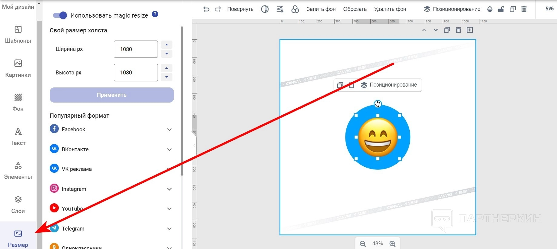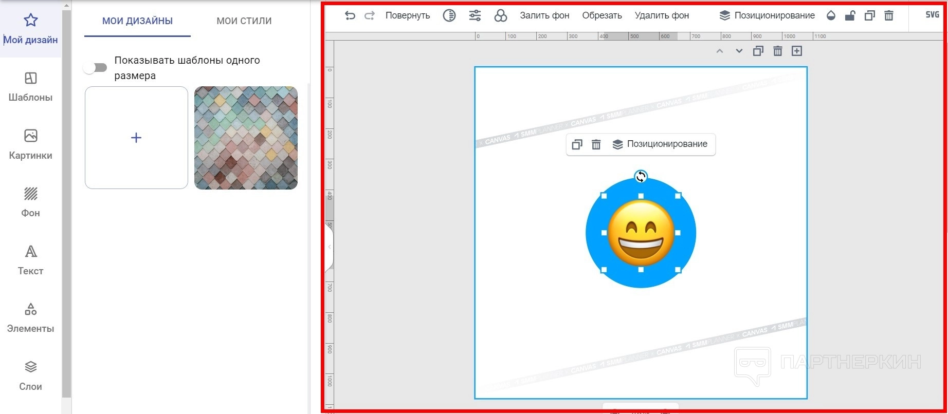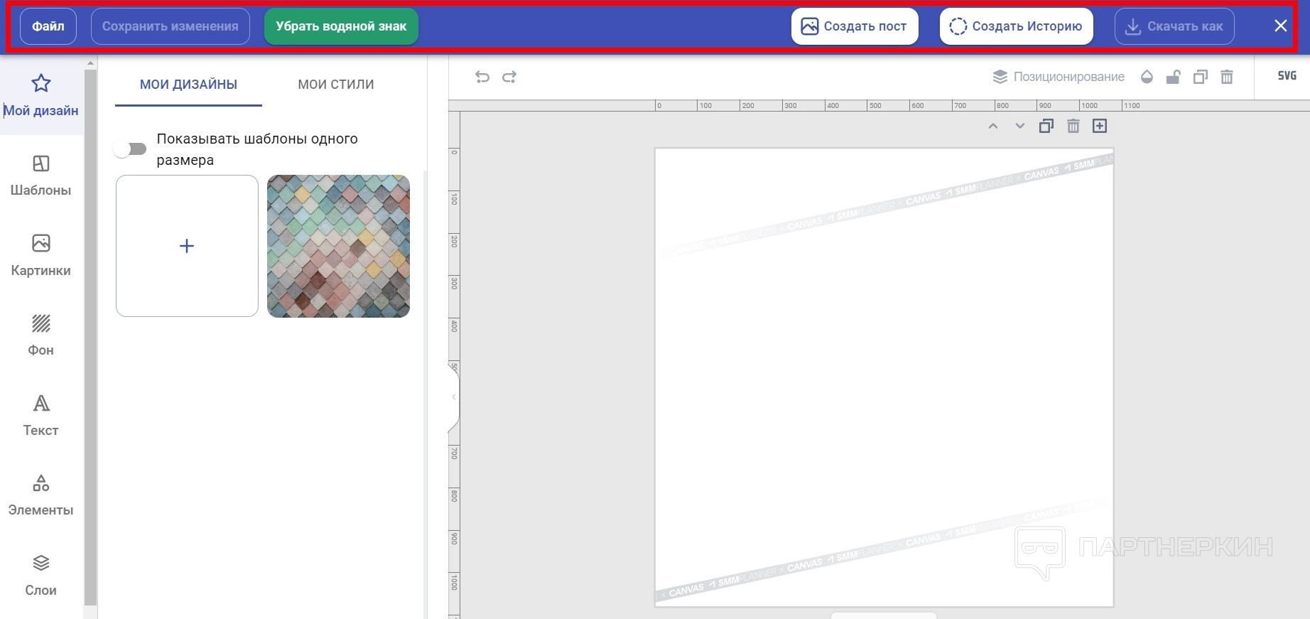Онлайн-редактор обладает множеством полезных функций, таких как возможность менять размер полотна в процессе создания креатива и загружать любимые дизайны. Кроме того,