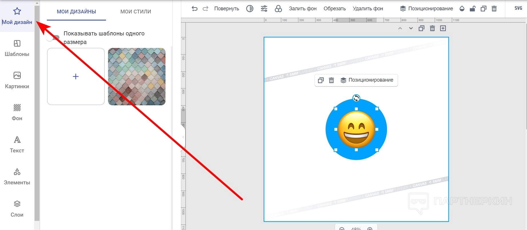 - Создать свой шаблон с нуля. Пользователь сам выбирает настройки и задает параметры. Готовый результат можно публиковать, сохранять на жесткий диск и так далее. После выбора перебрасывает на страницу «Мой дизайн».