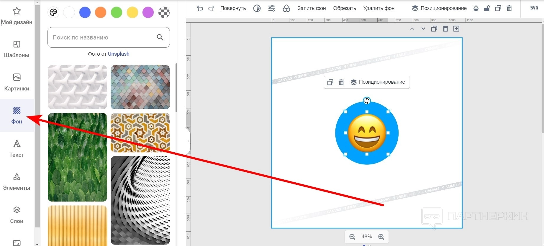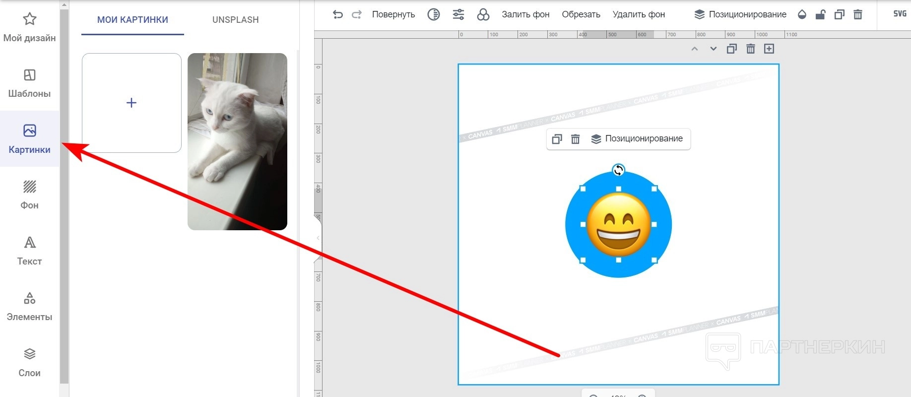 - Картинки. Библиотека собственных изображаний от Unplash. Также здесь можно загружать свои картинки.