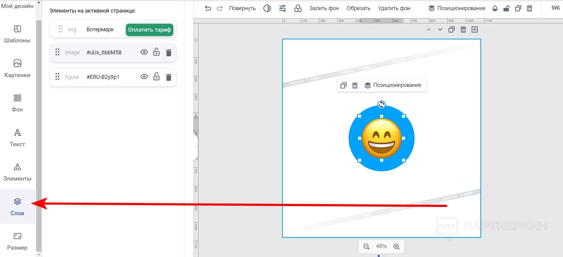 Конструктор представлен стандартным полотном. На него, при помощи блоков наносят текст, графику, изображения и так далее. Само полотно можно масштабировать, копировать и делать дубликаты.