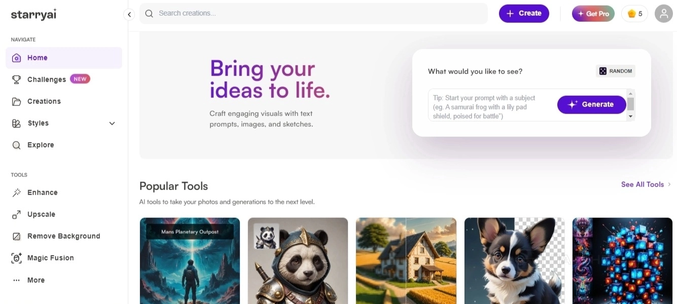 StarryAIдля улучшения качества фото, удаления фона и так далее.