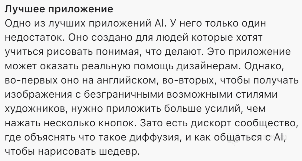 Например, один из пользователей мобильного приложения делится своими впечатлениями о его преимуществах: наличие пошаговых инструкций и гайдов и многообразие стилей. Однако отмечает, что сервис больше подойдет опытным дизайнерам, нежели новичкам: