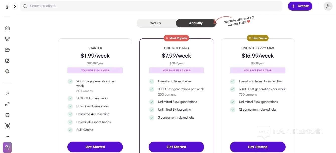 Подписки имеют ежегодную и ежемесячную оплату, однако каждый тариф рассчитан на определенные недельные лимиты. Оплата принимается в долларах.