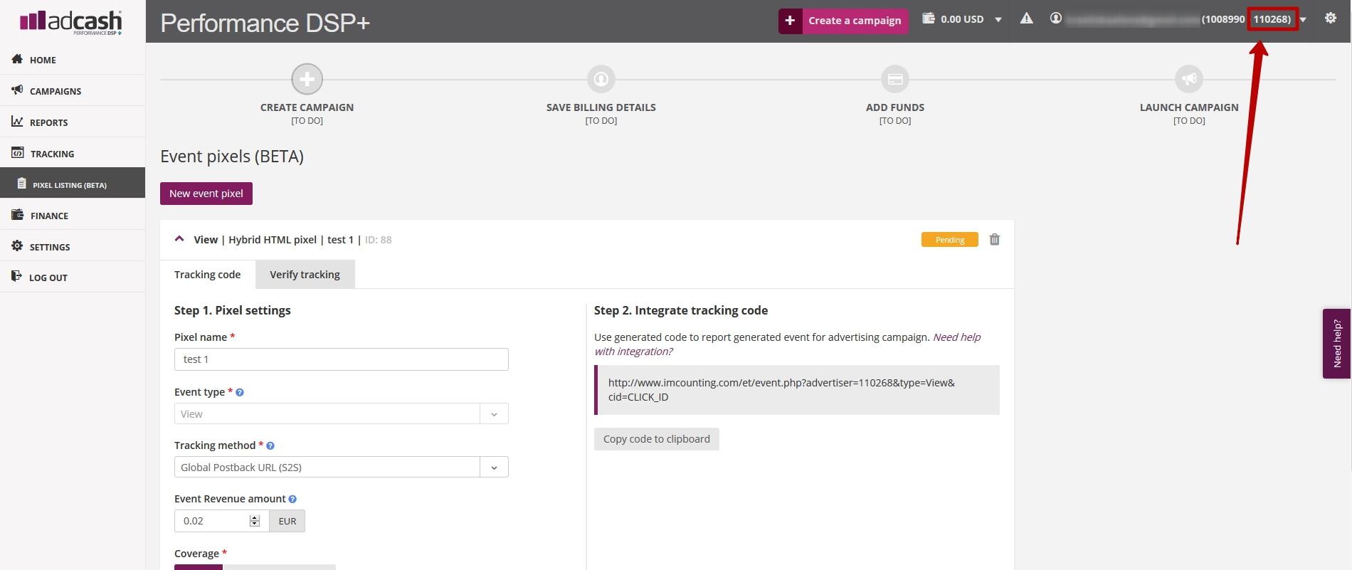 [advertiser_id] — тут введите ID своего аккаунта AdCash (посмотреть можно в правом верхнем углу)