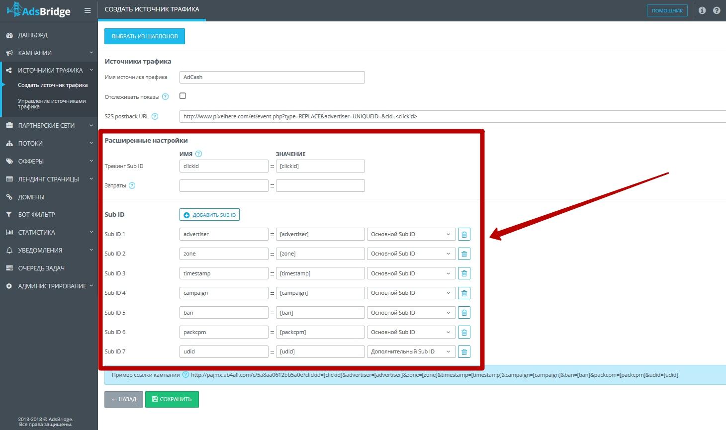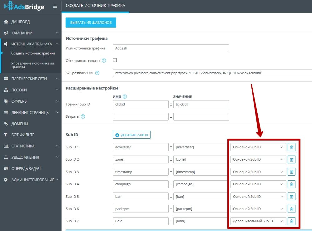 Подробнее о создании источников трафика на AdsBridge можно прочитать