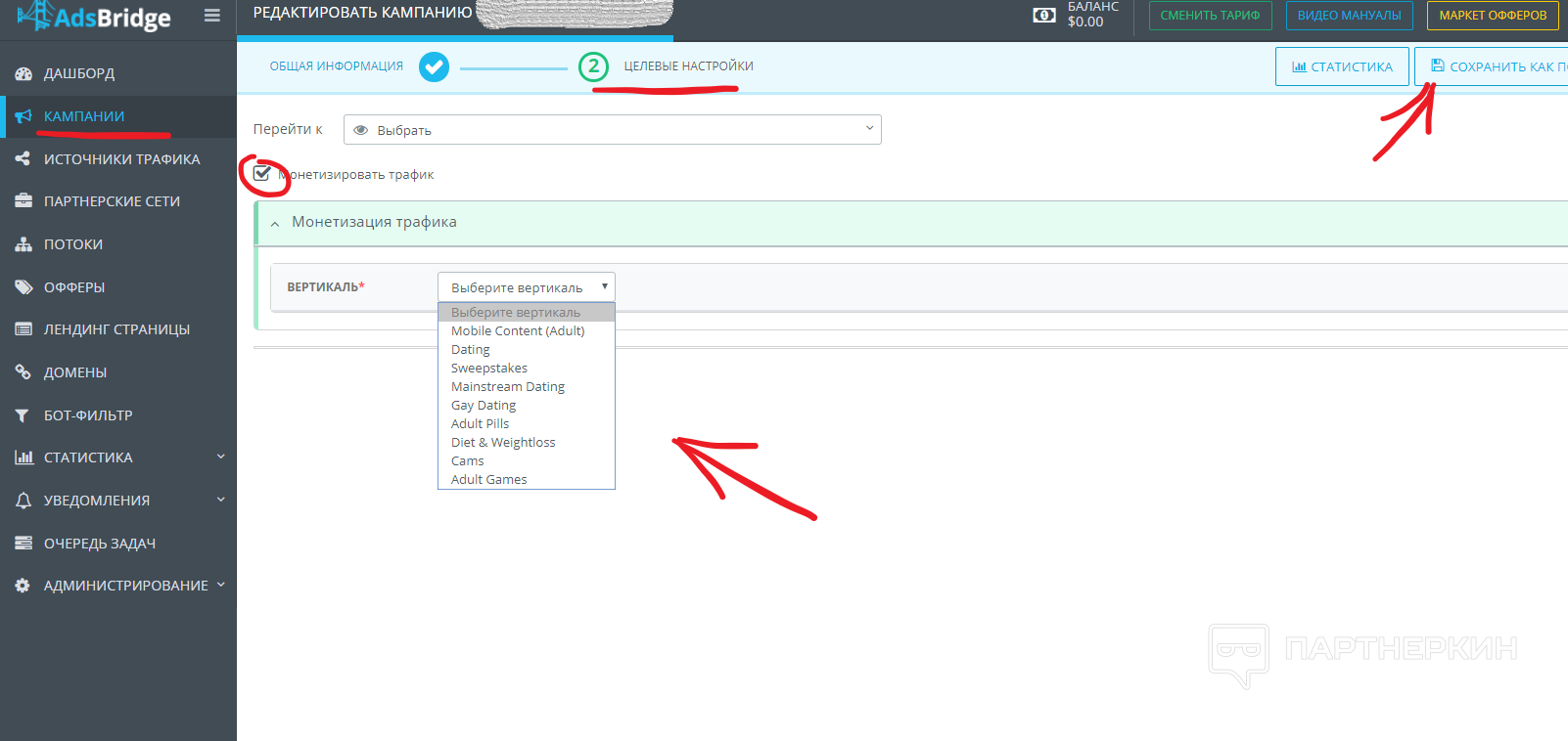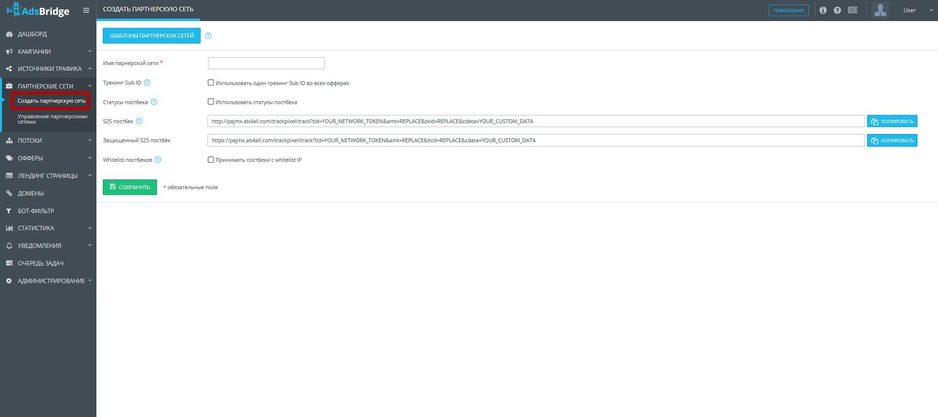 Подробнее о настройке партнерских сетей на AdsBridge вы найдете