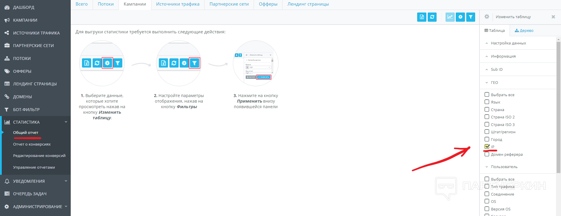 4. После того, как рекламную кампанию одобрят, заходим в раздел общей статистики и смотрим с каких именно ip был заход (скрин ниже). Выделяем их и копируем.