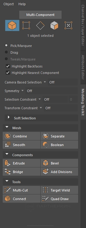 Меню «Modify» содержит инструменты для изменения объектов на сцене. Здесь можно перемещать, поворачивать и масштабировать объекты, а также применять различные деформации. Кроме того, в этом меню можно замораживать трансформации, что позволяет зафиксировать текущее состояние объекта и предотвратить случайные изменения.