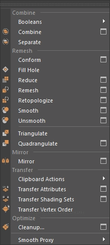 Меню «Mesh» предназначено для работы с полигональной сеткой модели. Оно предоставляет инструменты для управления структурой сетки, такие как триангуляция, которая преобразует все полигоны в треугольники. Также через это меню можно объединять и разделять полигоны, оптимизировать сетку и выполнять другие операции с полигональной структурой.