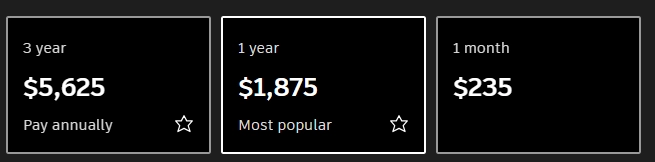 Наиболее экономичный вариант – лицензия на три года, стоимость которой составляет 3625 USD, что эквивалентно 100.69 USD в месяц, обеспечивая значительную экономию для длительных проектов.