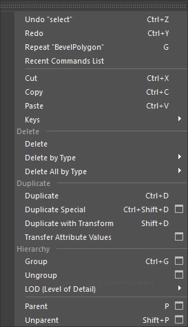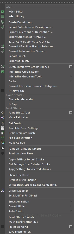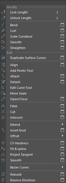 Меню «Curves» предоставляет инструменты для создания и редактирования кривых, которые используются для моделирования и анимации. В этом меню можно создавать новые кривые, редактировать существующие, а также применять различные деформации и преобразования для точного контроля над формой и траекториями движения объектов.