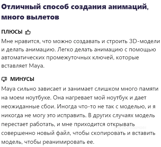 С помощью Maya пользователи могут создавать и управлять проектами анимации с начального этапа моделирования до конечного рендеринга. Программа обеспечивает высокую производительность даже при работе с крупными проектами, что делает ее идеальным выбором для крупных и масштабных производств.