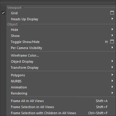Меню «Display» предоставляет возможности управления видимостью объектов и элементов сцены. Здесь можно включать и выключать сетку, скрывать и показывать объекты, менять цвет объектов и фреймов, а также настраивать режимы затенения. Эти функции помогают оптимизировать отображение сцены, делая работу более удобной и эффективной.