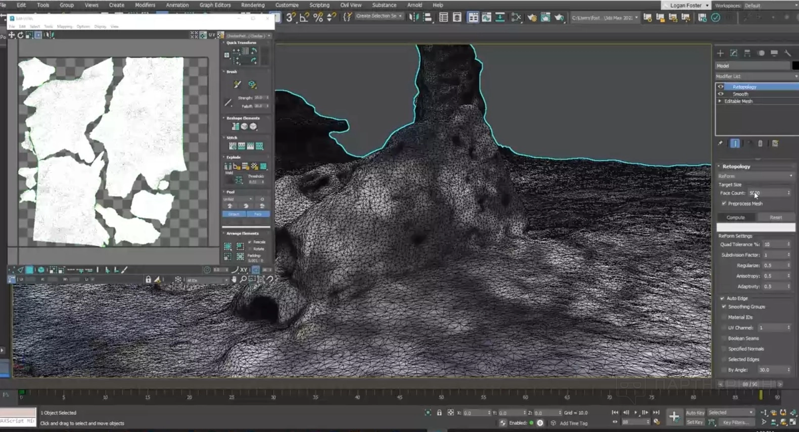 - Инструменты ретопологии. Они позволяют автоматически восстанавливать данные полигональной сетки в виде чистой топологии на основе четырехугольников. Этот процесс обеспечивает высокую точность и упрощает создание моделей, которые легче редактировать и анимировать. Ретопология полезна при работе с моделями, созданными с помощью сканирования или других методов, которые могут создавать сложные и нерегулярные сетки. Автоматизация помогает сократить время и усилия, необходимые для подготовки моделей к дальнейшей работе.