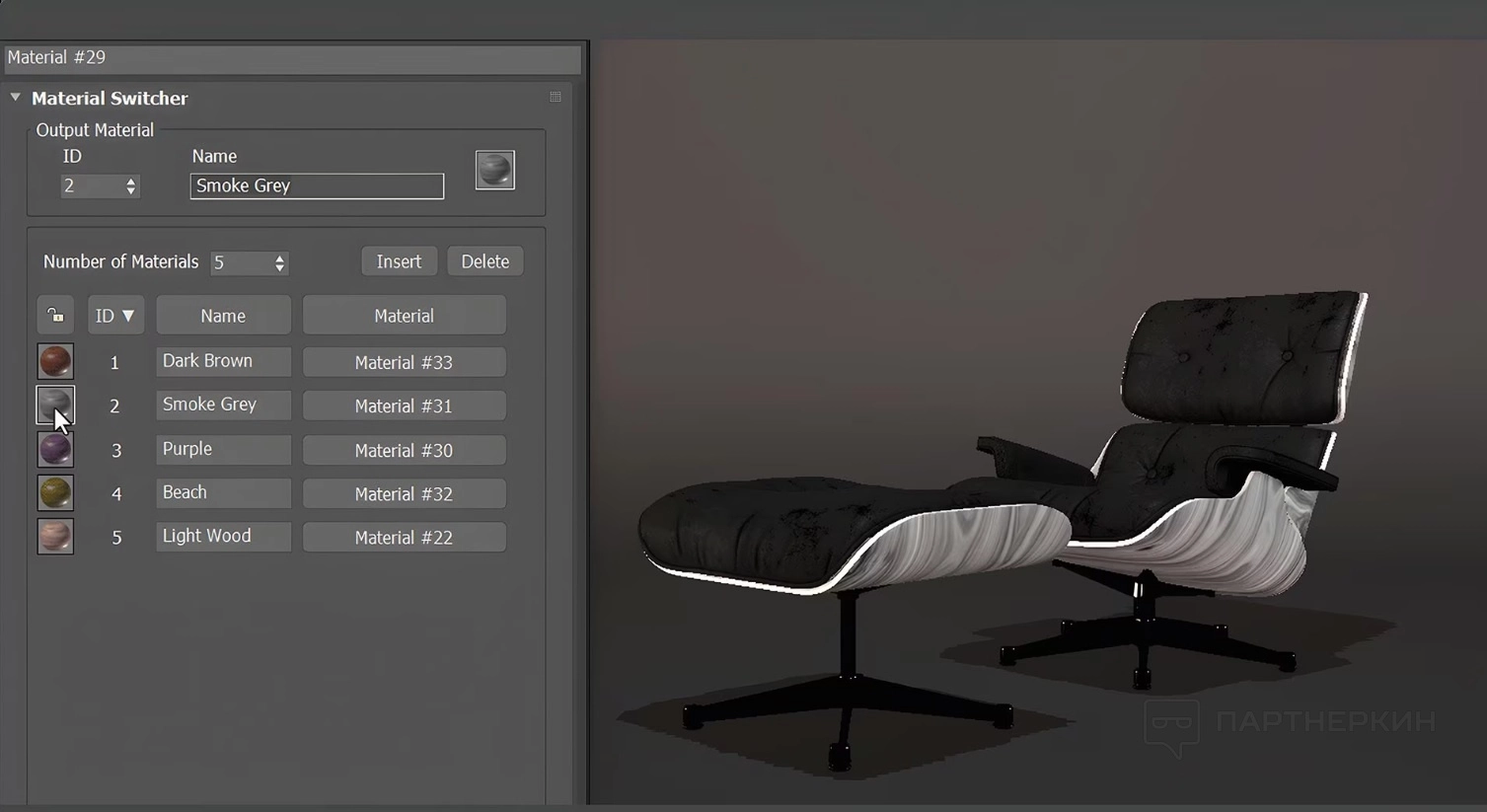 - Переключатель материалов. Инструмент переключателя позволяет легко управлять отображением материалов в несколько кликов. Это полезно при работе с клиентами или командами, когда нужно быстро показать различные варианты дизайна и выбрать наиболее подходящий.