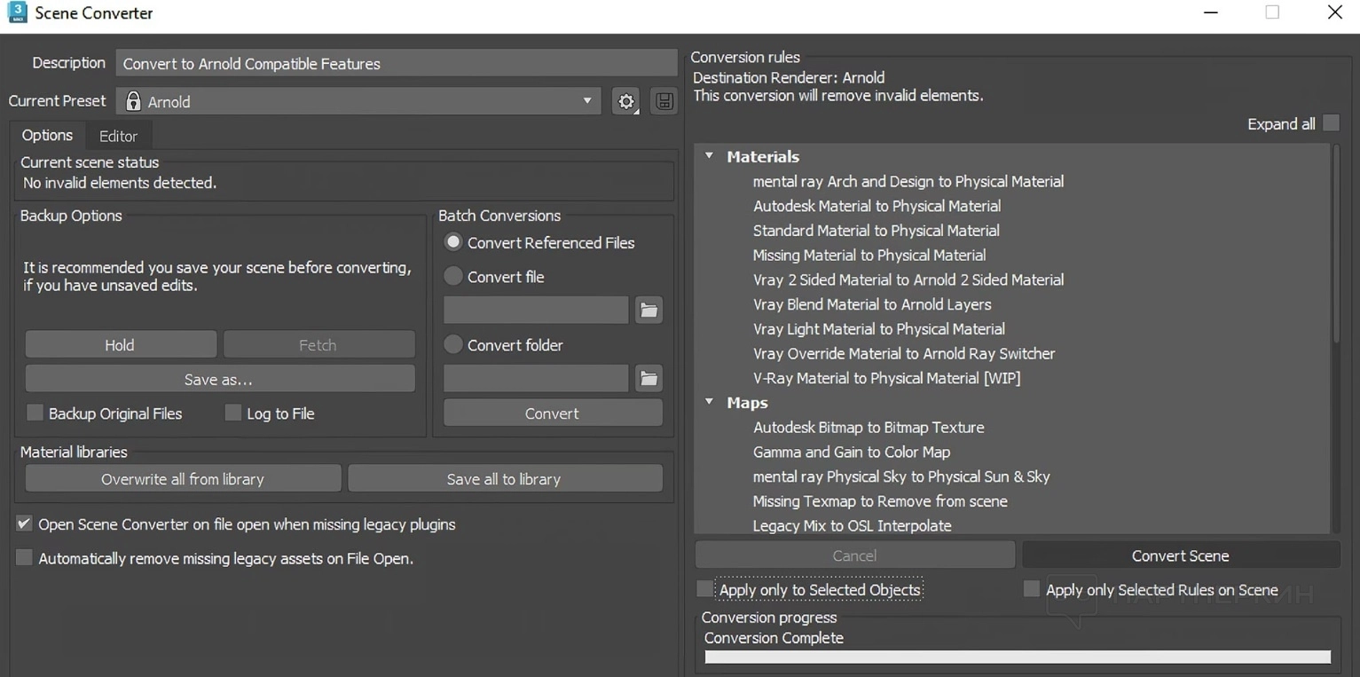Конвертер сцен позволяет легко переключать материалы, источники света, камеры и модули рендеринга с одного на другой. Это упрощает процесс интеграции различных элементов сцены и обеспечивает большую гибкость при работе с проектами.