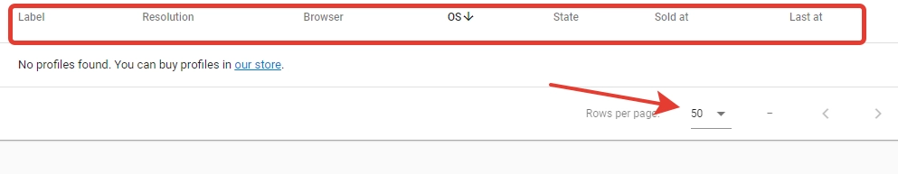Вкладка «Profiles»отображает количество имеющихся профилей. Там же есть кнопка для перехода в магазин для приобретения новых учеток. Стоит обратить внимание, что все учетные записи отсортированы по разным параметрам. Например, браузер, ОС, дата добавления и так далее. При необходимости можно менять количество отображаемых на странице профилей (от 5 до 100).
