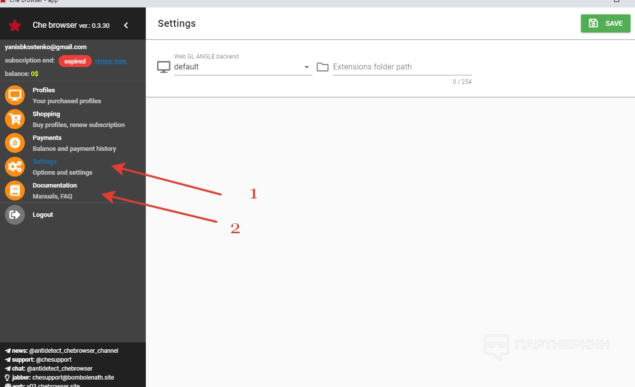 Вкладка «Setting» содержит настройки, применяемые к купленным профилям, а при нажатии на «Documentation» пользователя перекинет на официальный сайт браузера для ознакомления с инструкцией.