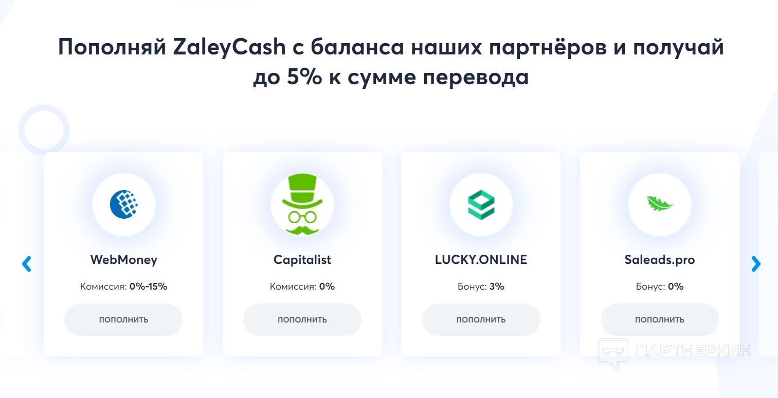 Сервис ZaleyCash позволяет бороться с этими издержками. С помощью ZaleyCash можно выводить на общий баланс профит, который получен более чем в 50 интегрированных партнерках. Вывод осуществляется без комиссий и с бонусом 5% от суммы перевода. Таким образом,