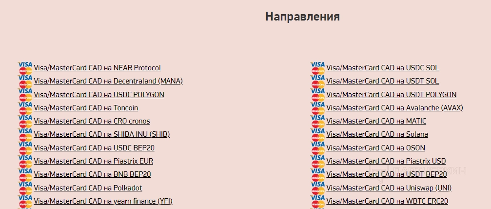 Bitcoin, Ethereum, USD ERC20, USDT TRC20, USDT BEP20, USDT Polygon, USDT Sol, USD Coin ERC20, USD BEP20, USDS SOL, Binance USD (BUSD), Dai (DAI), Pax Dollar (USDP), Monero, Solana, Litecoin, Dash, Tron, Stellar, Cardano (ADA), Ripple, ZCash, Bitcoin, Cash ABC, BNB BEP20, Binance Coin (BNB), Ethereum Classic (ETC), Dogecoin, Toncoin, Cosmos (ATOM), Polkadot, Bitcoin Gold, Avalanche (AVAX), BitTorrent, Tezos, Chainlink (LINK), IOTA, Ravencoin, Basic Attention Token (BAT), Decentraland (MANA), Matic, NEAR Protocol, CRO cronos, Yearn finance (YFI), NEM, Algorand, WBTC ERC20, Uniswap (UNI), SHIBA INU (SHIB) |