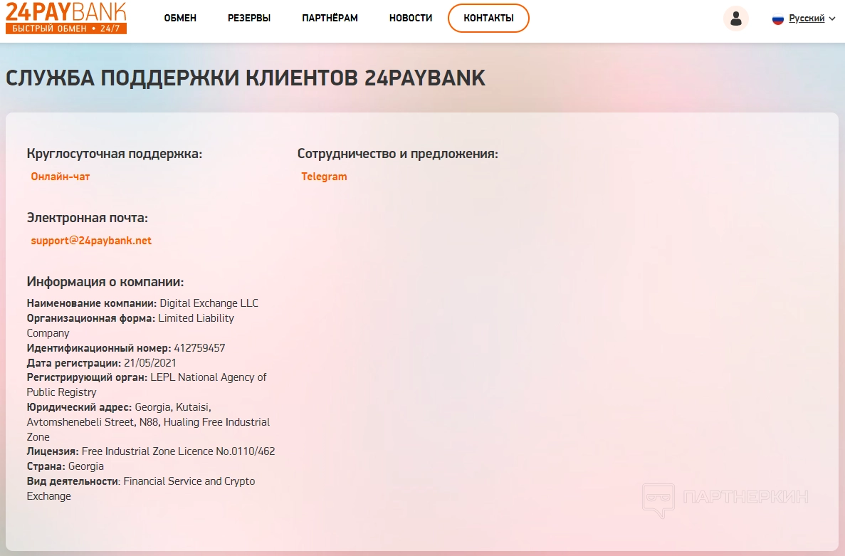 Пользователи могут связаться с технической поддержкой по онлайн-чату или электронной почте. Предложения о сотрудничестве необходимо направить в телеграм-канал. Еще в разделе представлена подробная информация о компании.