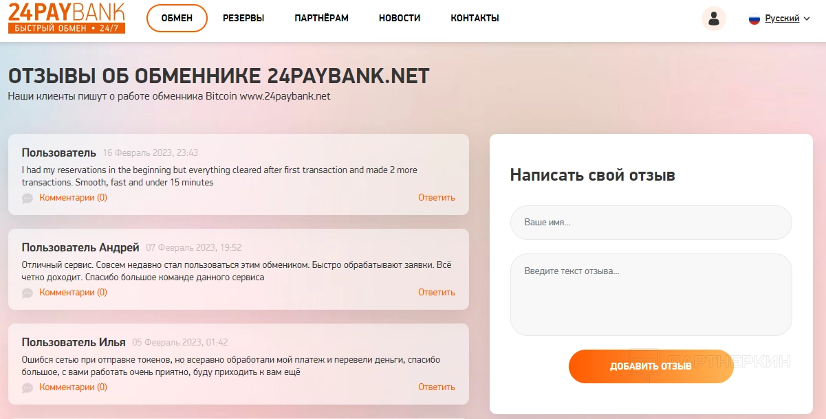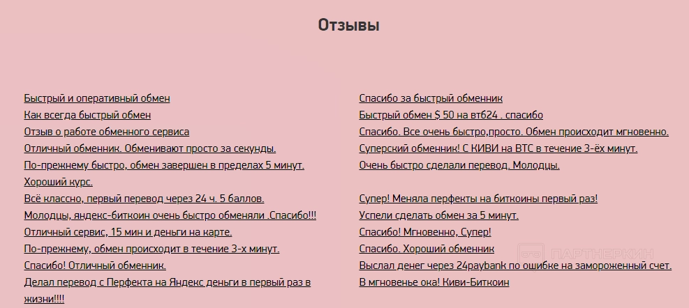 В этом разделе клиенты сервиса пишут отзывы о работе мультивалютного обменника