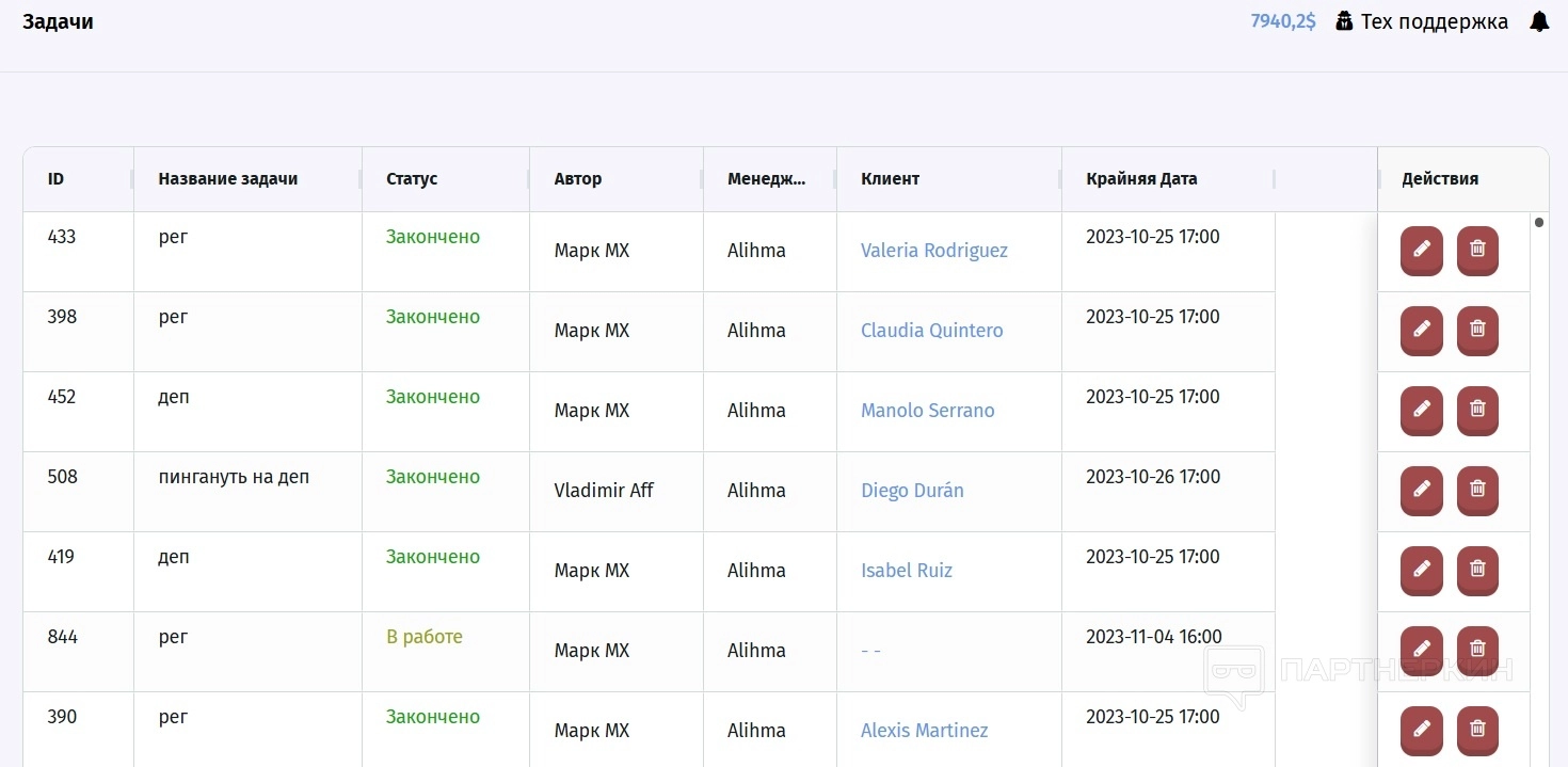 - Выставлять задачи для каждого клиента и отслеживать их своевременное выполнение.
