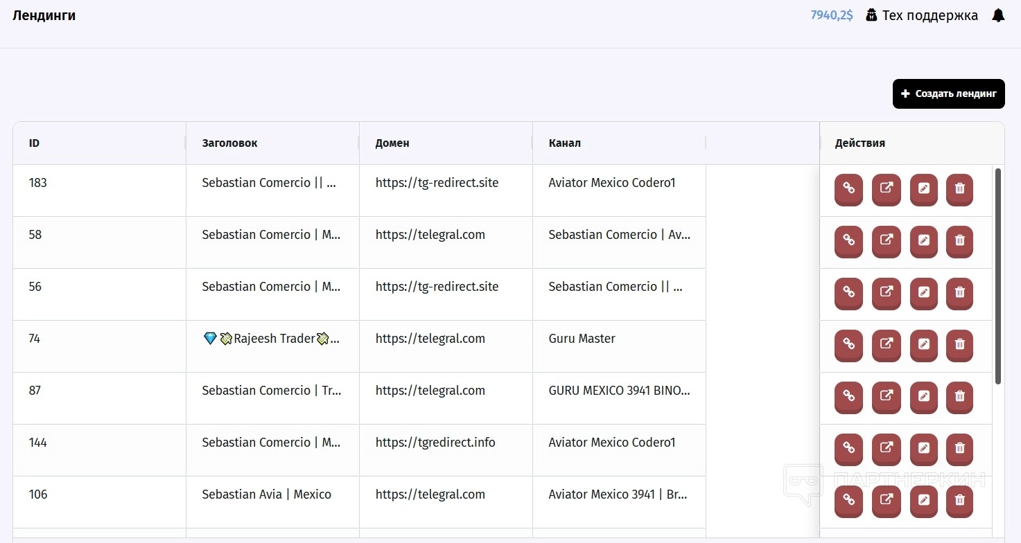 В разделе с лендингами можно смотреть информацию по лендингам, либо добавлять новые лендинги: