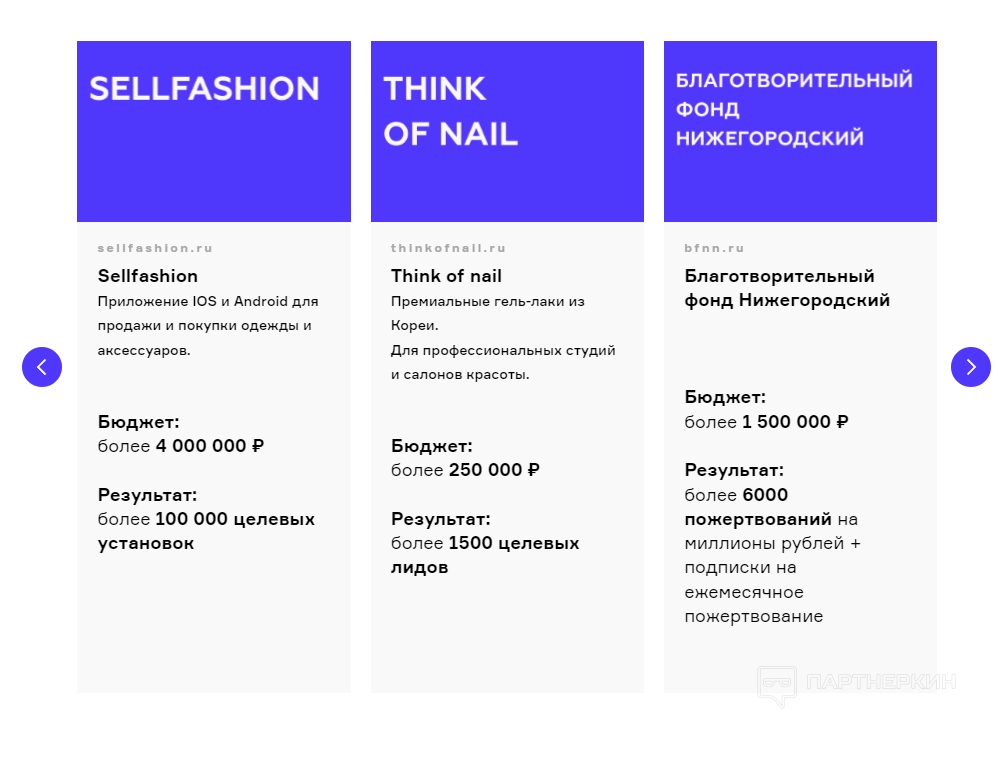 В разделе «Кейсы» представлены результаты выполненных работ. Как указано на сайте, специалисты