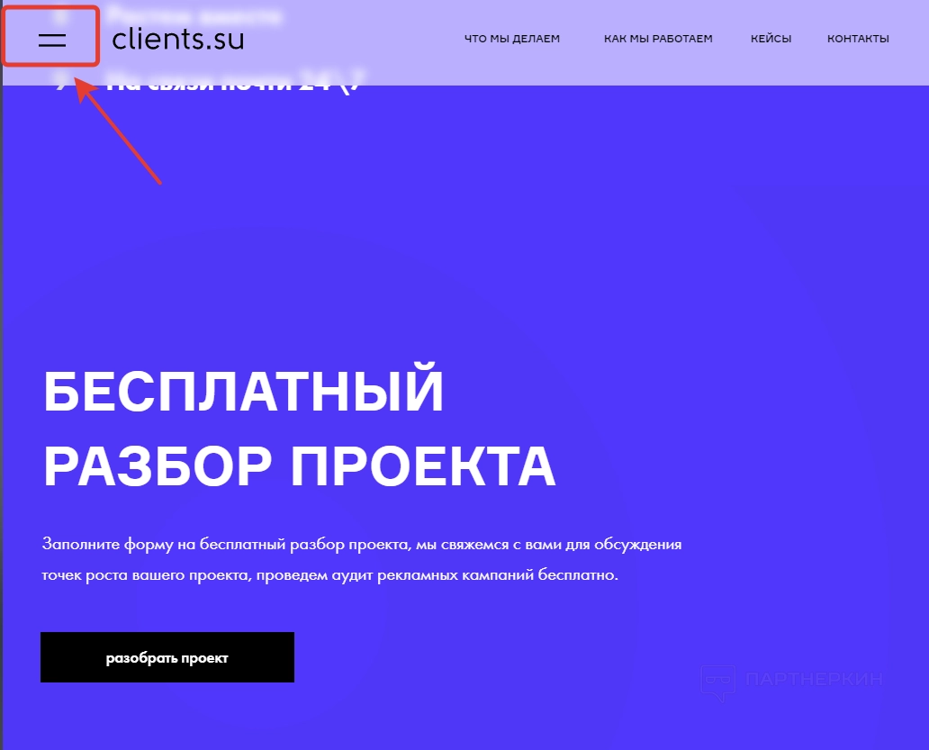 Чтобы разобраться в стоимости и понять, смогут ли специалисты выполнить работу, можно заказать бесплатный разбор проекта. Для этого необходимо кликнуть на значок с двумя полосками в левом верхнем углу и в появившемся меню выбрать «Бесплатный разбор проекта».