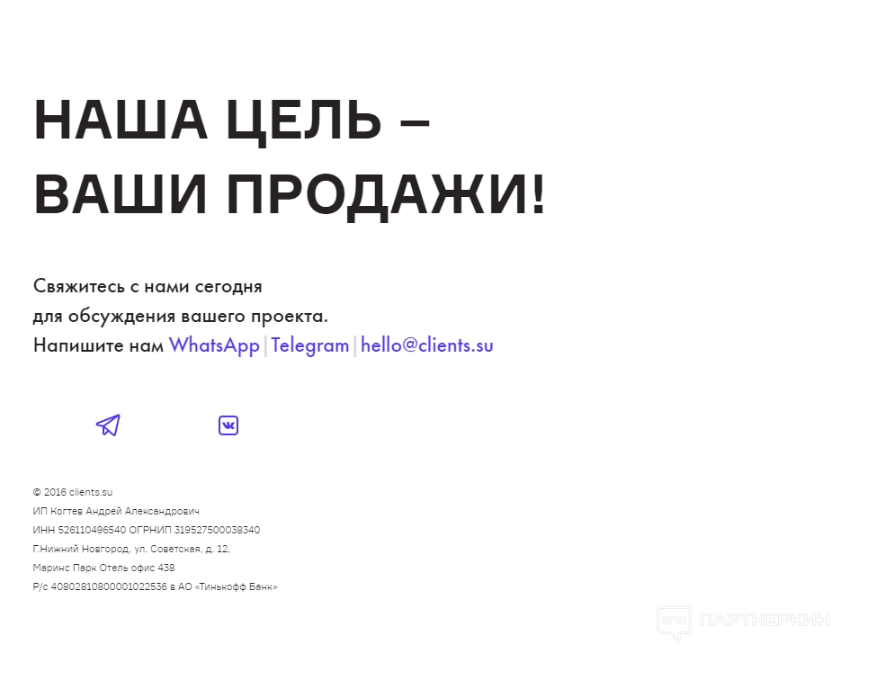 Последний раздел — «Контакты». В нем оставлены ссылки на