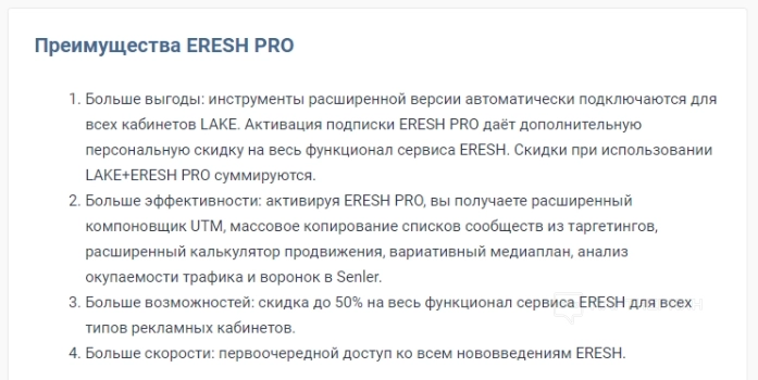 EreshPro — в данном разделе можно узнать подробности о Pro-тарифе на платформе, а также сразу оформить его по необходимости;