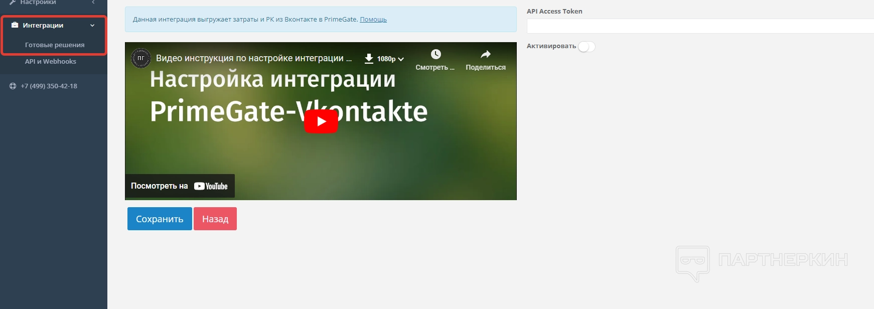 Перейдя в раздел «Интеграции» и открыв вкладку «Готовые решения», пользователь откроется список с доступными предложениями. На момент написания статьи это были следующие сервисы: