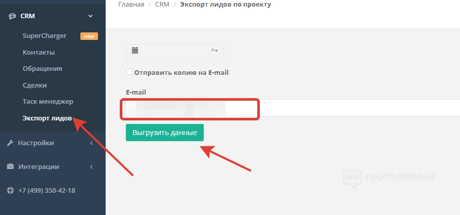Если пользователю нужно выгрузить лиды, тогда следует перейти во вкладку «Экспорт лидов», указать в соответствующей строке электронную почту и нажать на кнопку в выгрузки. После этого система отправит на указанный ящик файл с лидами.
