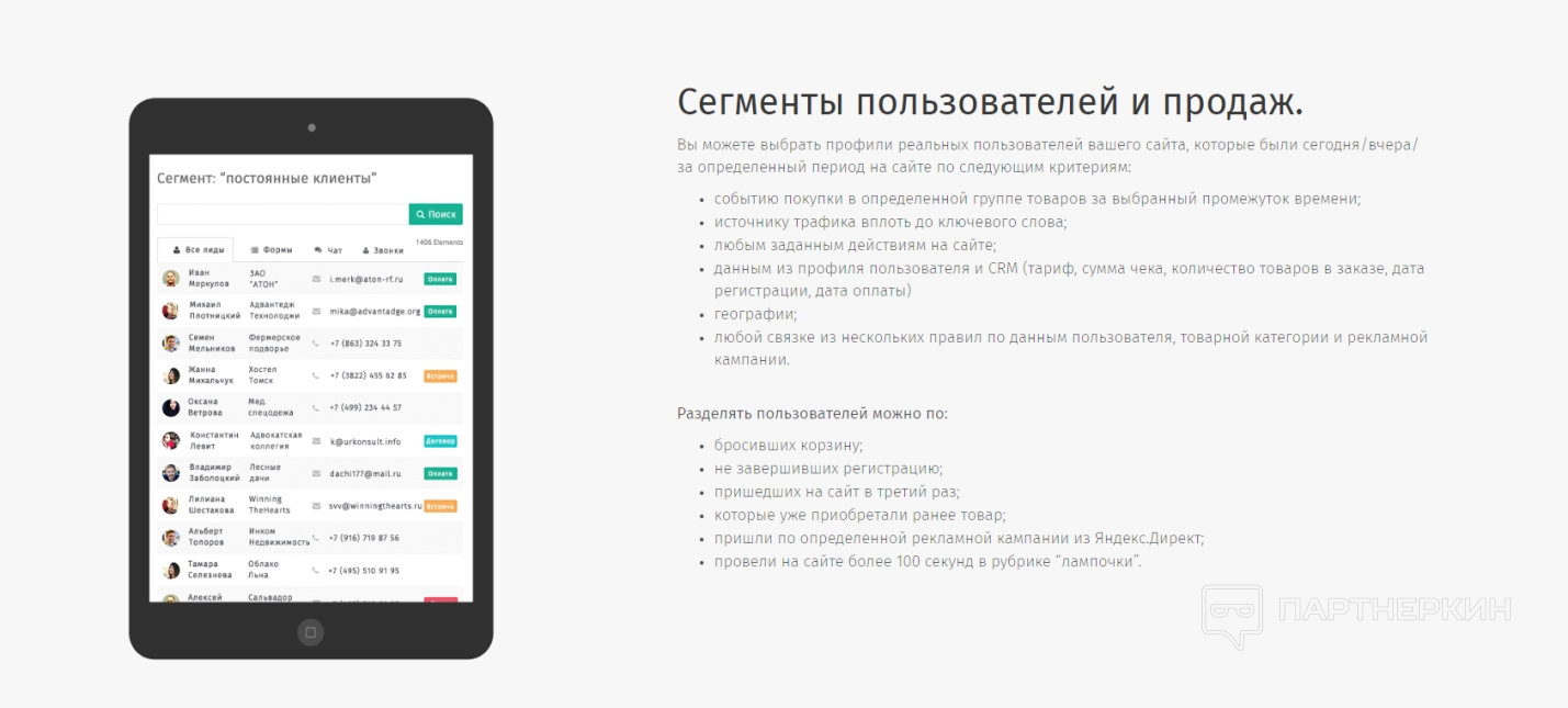 - CRM. Этот блок позволяет добавлять и обрабатывать лиды.